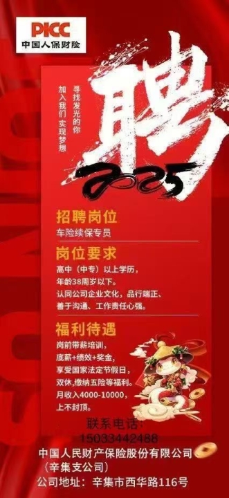 2、岗位要求:高中(中专)以上学历,年龄38周岁以下。认同公司企业文化,品行端正、善于沟通、工作责任心强。
